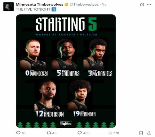 北京時(shí)間4月11日,NBA常規(guī)賽,森林狼以136-132擊敗火箭終結(jié)火箭隊(duì)8連勝。首節(jié)火箭落后,半場(chǎng)打完火箭實(shí)現(xiàn)反超,三節(jié)打完火箭領(lǐng)先3分,末節(jié)森林狼很快反超,愛(ài)德華茲關(guān)鍵三分,杜蘭特致命失誤葬送比賽。