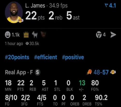 半場(chǎng)打完后,詹姆斯的數(shù)據(jù)是這樣的: