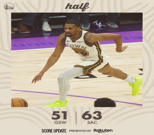 國王隊的卡特和克里福德上半場各得到12分,蒙克得到11分;勇士隊的梅爾頓得到17分,庫里6投1中,只得到3分、2次助攻。