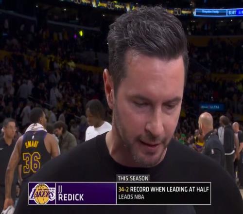背靠背出戰(zhàn)的詹姆斯,首節(jié)4中4,其中三分2投2中,還有雙手暴扣的表現(xiàn),單節(jié)14分,很難想象這是一位41歲的老將完成的事情。事實(shí)證明,只要給他球權(quán),老詹依然是全面的得分手,在盧卡、小里在場(chǎng)的情況下,詹姆斯確實(shí)放權(quán)了。