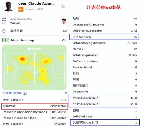 讓克勞德的傳球成功率是76%,看上去似乎還沒那么糟糕,問題是他的很多球,哪怕隊(duì)友接住了,也完全沒可能繼續(xù)向前進(jìn)攻,為了把球停住,甚至需要花費(fèi)極大的力氣和時(shí)間,導(dǎo)致進(jìn)攻停滯。