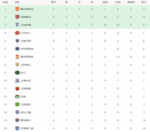 隨著申花10海港,泰山10河南,重慶21,最新排名:榜首易主了