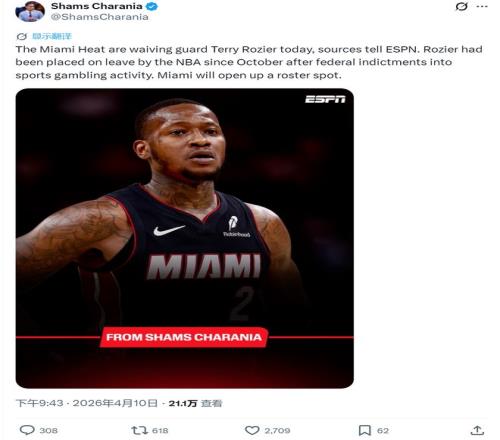 羅齊爾,被裁了。不是交易,不是買(mǎi)斷,是直接裁掉。本賽季一場(chǎng)沒(méi)打,2660萬(wàn)美元薪水照拿。熱火騰出一個(gè)名額,準(zhǔn)備在季后賽開(kāi)始前簽個(gè)人。東部第十,連贏兩場(chǎng)附加賽才能進(jìn)季后賽,熱火自己還在水里泡著,卻先把這個(gè)背了兩年的包袱扔上了岸。