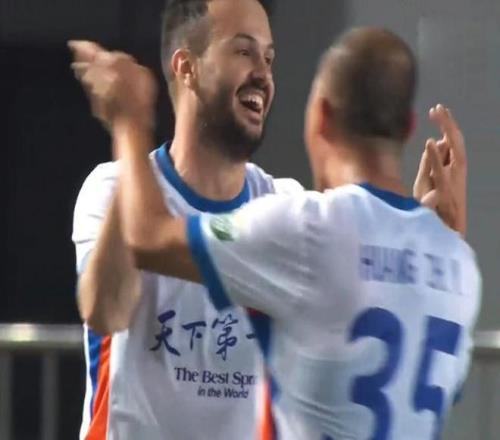 第43分鐘,王國(guó)明出擊失誤,卡扎伊什維利挑射破門,山東泰山1-0領(lǐng)先