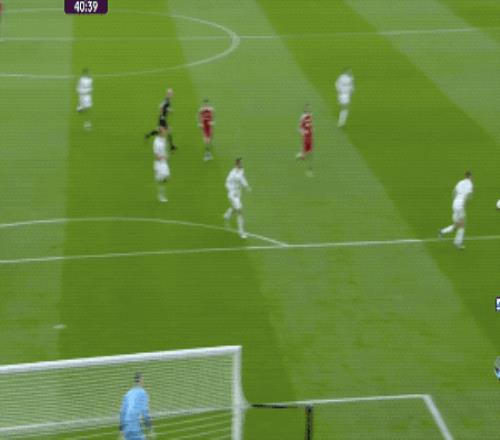 第40分鐘,利物浦推動快速反擊,恩古莫哈擺脫后傳球,加克波架炮,薩拉赫上演標志性兜射破門。