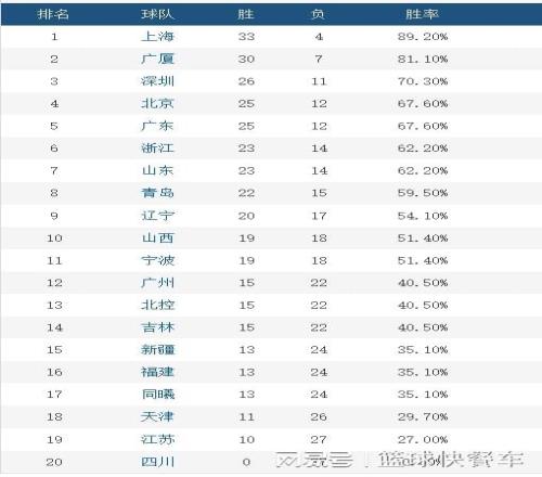 CBA積分榜最新排名出爐!深圳逆襲廣東殺回前3:山東第7遼寧第9