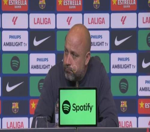 西甲第31輪,西班牙人客場1-4不敵巴薩,輸?shù)艏犹┑卤取Y惡笪靼嘌廊酥鹘叹汃R諾洛-岡薩雷斯出席了新聞發(fā)布會。