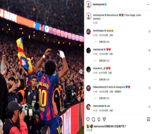 亞馬爾在加泰羅尼亞德比后通過社交媒體發(fā)文慶祝巴薩取勝,并留下了一句火藥味十足的話。