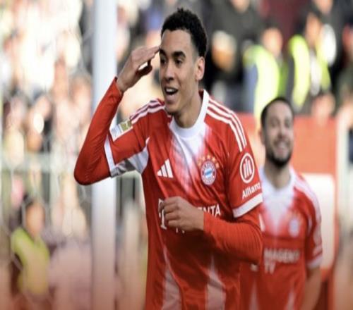 開場僅9分鐘,萊默爾右路傳中,穆西亞拉頭槌破網(wǎng),拜仁1-0領(lǐng)先。這是拜仁本賽季德甲第101球,追平了自己在1971-72賽季創(chuàng)造的紀錄。然而,這僅僅是序曲。