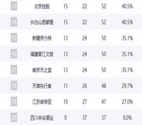 前3基本穩(wěn)固,上海第1,黑馬第3,京粵爭第4,山東掉隊(duì),遼寧第9