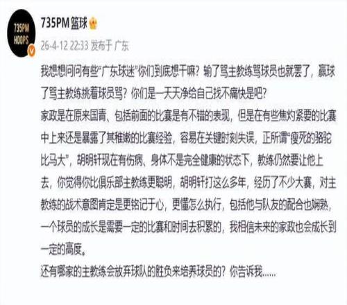 廣東終結(jié)廣廈主場18連勝!杜鋒卻遭質(zhì)疑,媒體人怒了:到底想干嘛