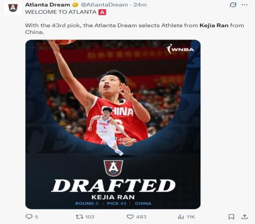 WNBA球隊(duì)亞特蘭大夢(mèng)想隊(duì)剛剛官方宣布第三輪43順位選中了冉珂嘉,19歲的冉珂嘉未來(lái)有希望登陸WNBA。幾天之前李月汝剛剛與達(dá)拉斯飛翼隊(duì)達(dá)成了續(xù)約,李月汝跟飛翼簽下的是訓(xùn)練營(yíng)合同,目前還不知道李月汝能否繼續(xù)留在WNBA,但中國(guó)球員們都開(kāi)始努力的向上翻越,對(duì)于女籃的未來(lái)是巨大的利好。