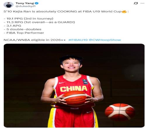 2025年冉珂嘉還代表中國(guó)U19國(guó)青隊(duì)征戰(zhàn)世青賽,場(chǎng)均19.1分11.3籃板3.1助攻1.2搶斷,拿到五次兩雙,她也成為了U19國(guó)青女籃的得分王+籃板王,身高只有1.81米的冉珂嘉身體素質(zhì)太出色了。