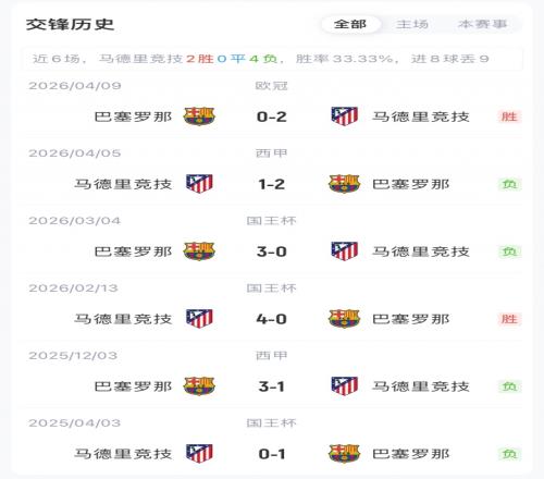 【近期戰(zhàn)績及交鋒歷史】