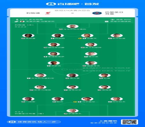 體育播報4月15日宣 歐冠8強次回合,利物浦主場迎戰(zhàn)巴黎比賽即將打響。賽前首發(fā)出爐。首回合比賽,巴黎2-0利物浦。