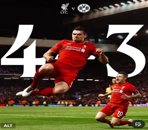 10年前的今天利物浦歐聯(lián)杯43逆轉(zhuǎn)淘汰多特,球隊(duì)官推曬海報(bào)重溫