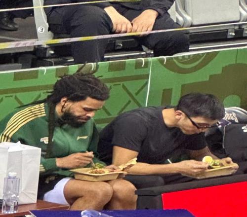 期間,大量中國(guó)Rapper都去了CBA現(xiàn)場(chǎng),和JCOLE合影。