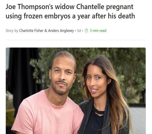 體育播報(bào)4月14日宣 msn報(bào)道,已故前曼聯(lián)青訓(xùn)球員喬·湯普森的遺孀尚特爾,在丈夫因霍奇金淋巴瘤去世一周年之際,宣布通過(guò)冷凍胚胎試管受精技術(shù)成功懷孕,目前已孕25周。