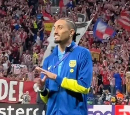 在剛剛結(jié)束的歐冠1/4決賽次回合比賽中,巴薩2-1戰(zhàn)勝馬競,但總比分2-3遭到淘汰。此役,拉菲尼亞因傷缺陣,不過來到了賽場為球隊助威。