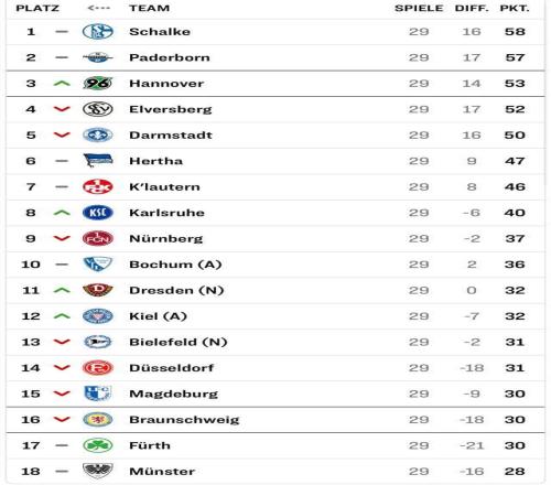 本輪德乙,領(lǐng)頭羊沙爾克04在遇到各種不利條件的逆境下,做客2比1逆轉(zhuǎn)升級(jí)競(jìng)爭(zhēng)對(duì)手埃爾弗斯貝格,拿到重要3分。德乙29輪戰(zhàn)罷,沙爾克58分排在第一,領(lǐng)先第三的漢諾威96足有5分,在最后5輪還有3個(gè)主場(chǎng)的情況下升級(jí)前景光明。