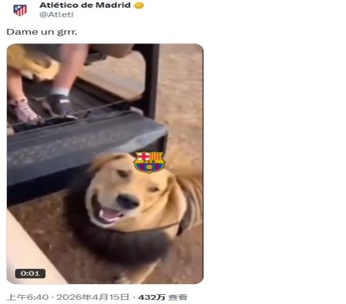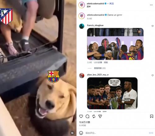 賽后馬競官方在幾乎所有社媒平臺都發(fā)布了一條嘲諷巴薩的視頻,視頻中,一只獅子被加上了巴薩隊徽,跑到帶著馬競隊徽的人身前,被薅下頭套,下面是條狗。