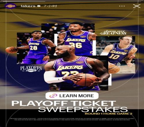 體育播報(bào)4月15日宣 今日,湖人官方Instagram賬號更新動態(tài),曬出一張海報(bào)宣傳湖人官網(wǎng)的球票抽獎活動。