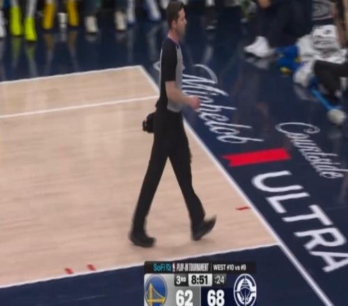體育播報4月16日宣 勇士vs快船的附加賽第三節(jié),裁判本·泰勒受傷離場。