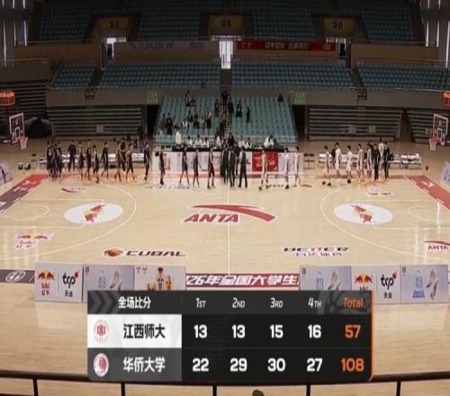 末節(jié)決戰(zhàn),華僑大學(xué)已經(jīng)派上全替補練兵,江西師大進(jìn)攻端還是打不開靠外線零敲碎打追分,方定翔三分加搶斷反擊命中,劉唯一外線也繼續(xù)開火,華僑大學(xué)還是領(lǐng)先到50分以上,最終華僑大學(xué)108-57大勝江西師大。