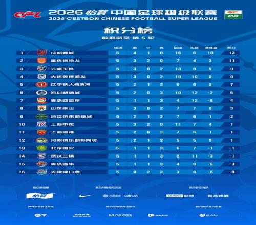 在4月12日客場2比1逆轉(zhuǎn)北京國安取勝之后,成都蓉城繼續(xù)領(lǐng)跑積分榜。