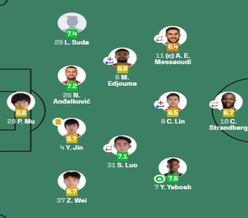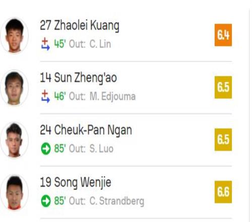 在賽后評分里,鄺兆鐳得到6.4分,與梅薩烏迪并列全隊最低。