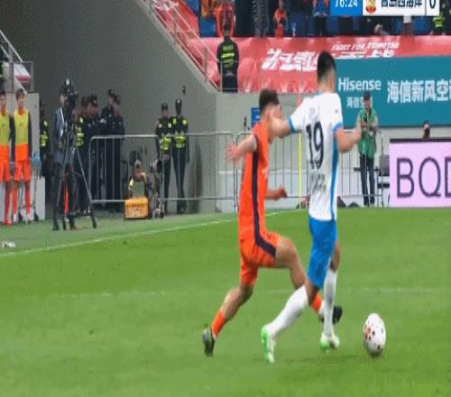 第76分鐘,鄺兆鐳拼搶時絆倒董宇,后者一度被擔架抬離球場。