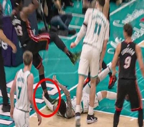 因此前在附加賽中,黃蜂球員拉梅洛-鮑爾在一次倒地中拽倒阿德巴約,導(dǎo)致其同樣摔倒,腰部受傷離場!