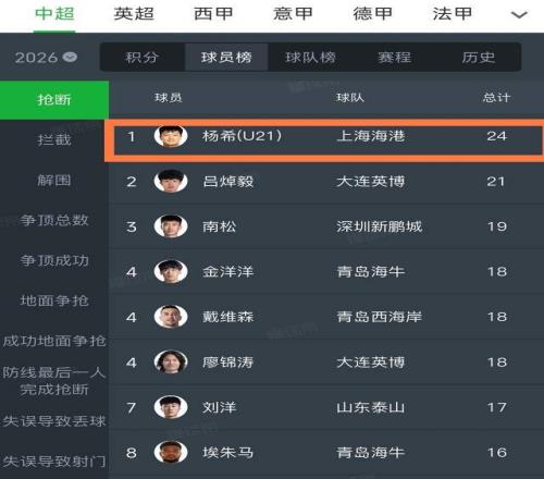 第三個,楊希就是海港今年最超值的引援,甚至不輸新引進(jìn)的外援安佩姆和讓克勞德,今天他不僅打進(jìn)關(guān)鍵進(jìn)球,而且還有2次成功過人和2次造犯規(guī),進(jìn)攻能力完全開發(fā)出來了,而在防守端,他更是以24次搶斷,高居中超搶斷榜第一,妥妥的中超搶斷王。