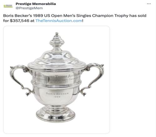 最近,1989年美國(guó)網(wǎng)球公開(kāi)賽男單冠軍的獎(jiǎng)杯進(jìn)入了公眾視野,它以357546美元的價(jià)格落槌。這一成交價(jià),不僅刷新了網(wǎng)球冠軍獎(jiǎng)杯的紀(jì)錄,也讓它成為目前市場(chǎng)上第二昂貴的網(wǎng)球類紀(jì)念品,僅次于前面提到的那把球拍。