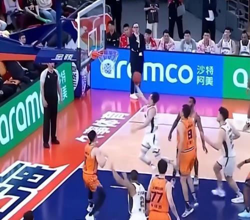 第二節(jié)初段,場上突發(fā)爭議判罰:趙繼偉借助隊友掩護突入禁區(qū)上籃,球擊筐彈出后雙方爭搶籃板致球出界,當值裁判果斷將球權(quán)判予上海隊。
