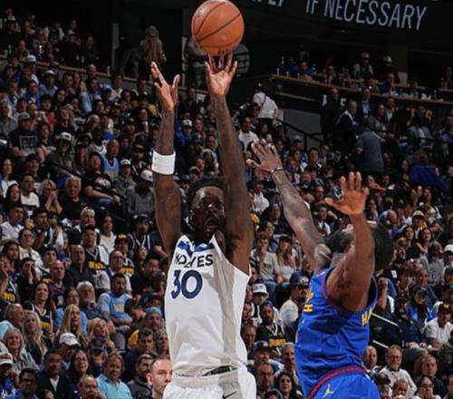 第四節(jié)決戰(zhàn),納茲-里德打成2+0,森林狼全隊(duì)罰球24中13,但僅落后掘金2分。布勞恩過(guò)掉蘭德?tīng)栵w扣,掘金剩6分鐘領(lǐng)先森林狼3分進(jìn)入暫停。迪溫琴佐從約基奇手中搶球快攻打進(jìn),還剩4分鐘反超掘金3分。最終,最終森林狼以119-114爆冷復(fù)仇掘金,完成19分大逆轉(zhuǎn),大比分改寫(xiě)為1-1追平。