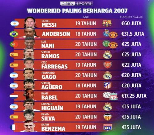 2007年身價(jià)最高的天才球員