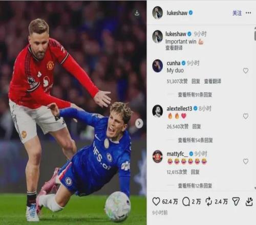終場哨響后,沒有一位曼聯(lián)球員與加納喬握手。更勁爆的是,盧克·肖在Instagram上發(fā)布了一張自己將加納喬推倒在地的照片,并配文“重要的勝利”。曼聯(lián)隊(duì)長布魯諾·費(fèi)爾南德斯隨即評論了一個(gè)寫著“That‘s a violation”的GIF動(dòng)圖。這條動(dòng)態(tài)7小時(shí)內(nèi)就獲得了7.7萬次點(diǎn)贊。