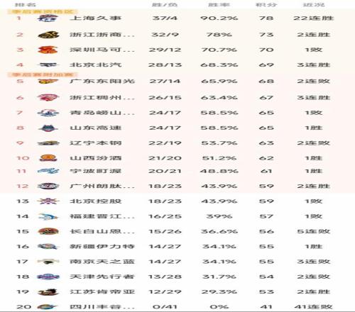 CBA最新積分榜