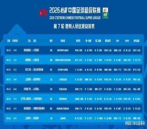 足協(xié)官宣中超第7輪裁判安排,嫩哨執(zhí)法國安戰(zhàn)深圳,麥麥提江復(fù)出
