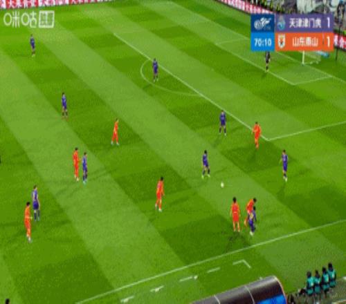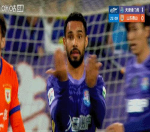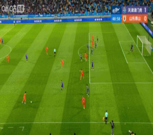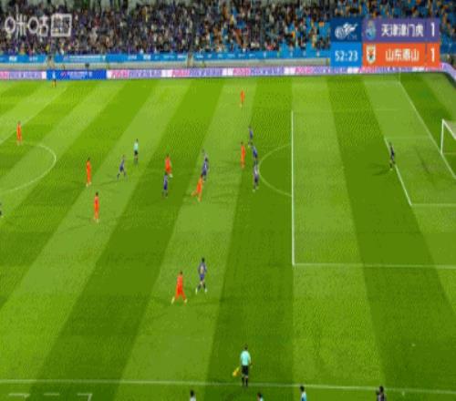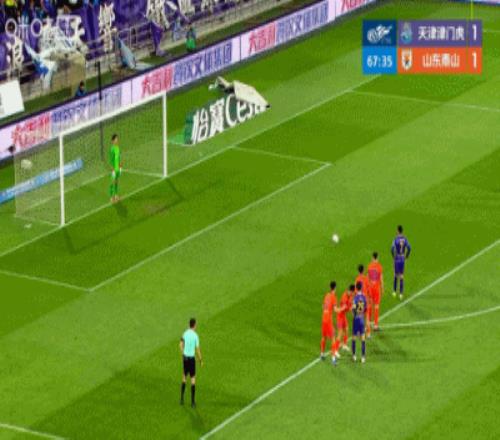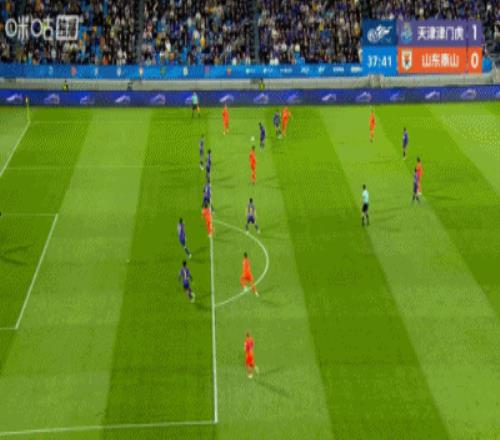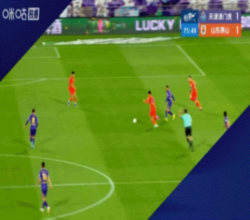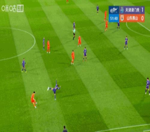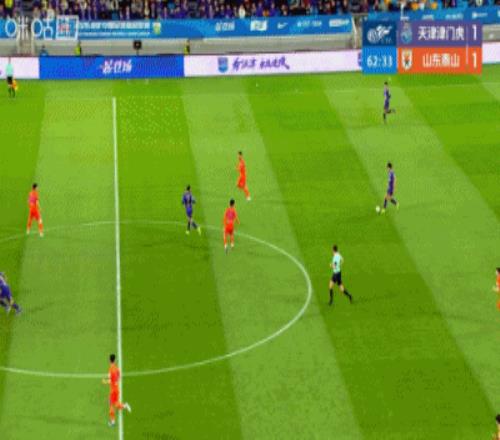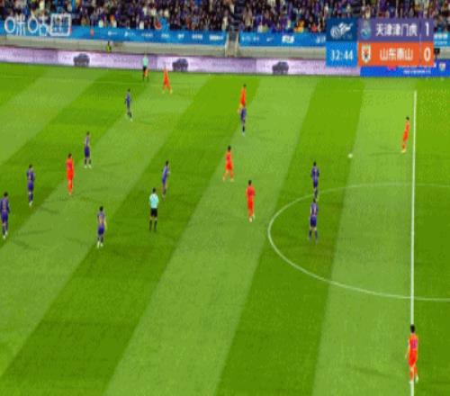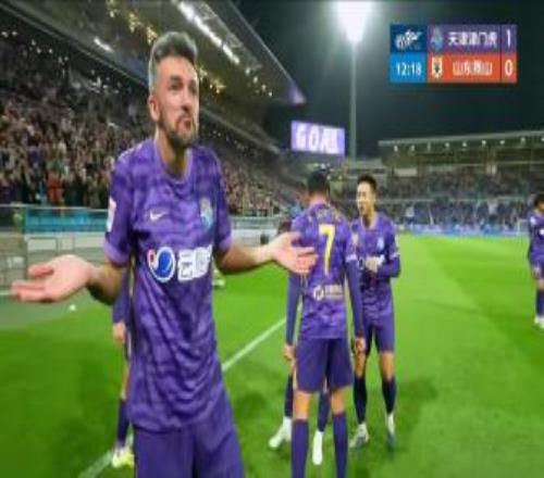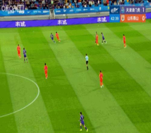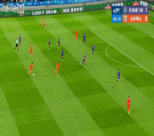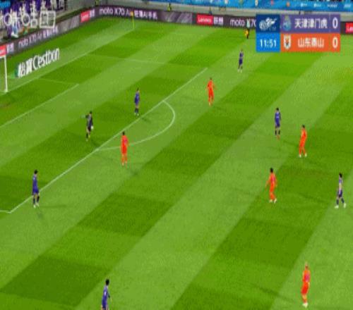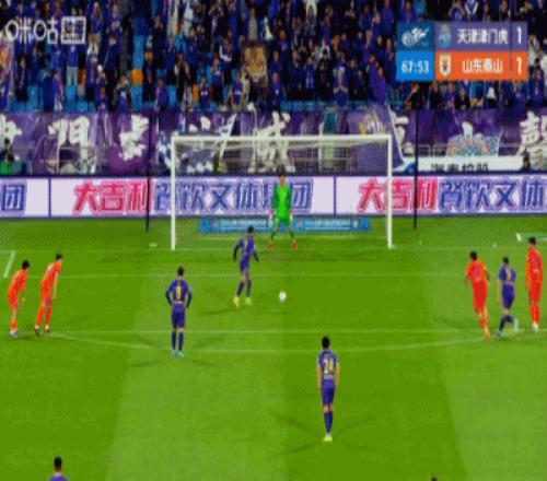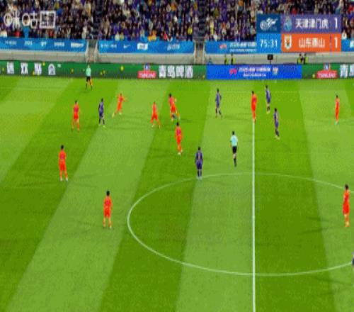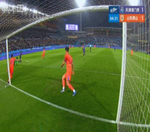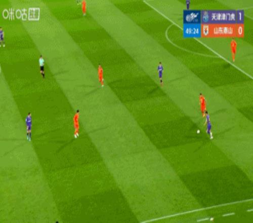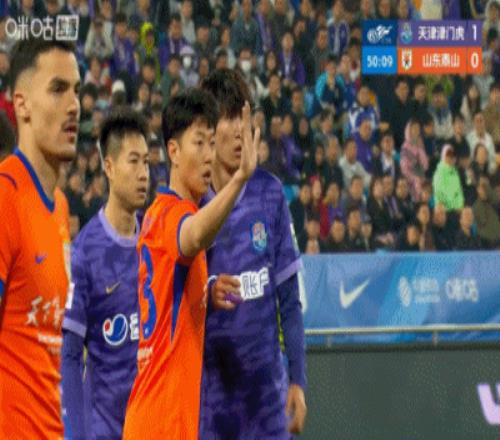 上半場補時4分鐘,津門虎1-0山東泰山。