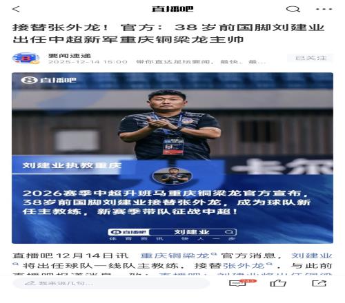 排隊(duì)道歉!去年銅梁龍官宣劉建業(yè)執(zhí)教,大批球迷質(zhì)疑:5輪下課