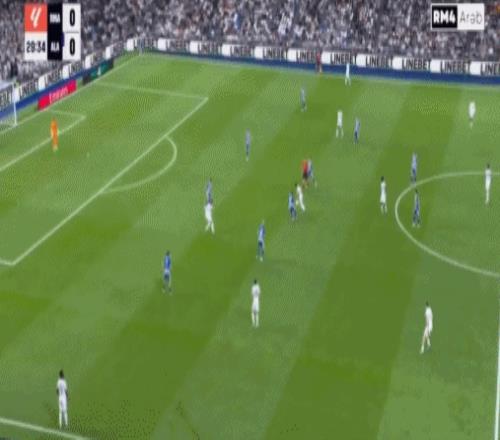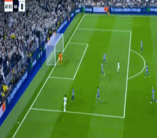 第8分鐘,姆巴佩左路內(nèi)切沒(méi)有起腳機(jī)會(huì),隨后勉強(qiáng)橫傳,貝林厄姆晃開(kāi)角度起腳勁射,擊中阿拉維斯后衛(wèi)產(chǎn)生折射偏出。