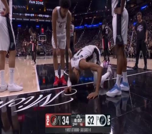 暫?;貋砘衾盏侠^續(xù)造殺傷,??怂惯B拿5分止血,克林根和亨德森彈無虛發(fā),開拓者最多領先13分!后半段科內特聯(lián)合瓦塞爾追分,亨德森和卡斯爾外線對狙,節(jié)末卡斯爾轟三分,文班亞馬造殺傷,第一節(jié)打完,馬刺28-27反超開拓者。進入第二節(jié),夏普和霍勒迪繼續(xù)上分,卡布暴扣回應,夏普續(xù)上三分球,此時場上發(fā)生意外:文班亞馬和霍勒迪對抗時,轉身被拉倒,文班亞馬倒地,結果頭部慣性砸到地板!以他的高度,相當于從二層樓位置,摔下來猛擊了一下!他爬起來的時候,感覺身體晃晃悠悠!