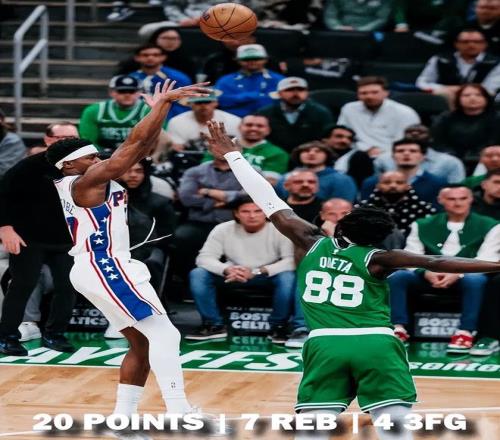 第四節(jié)決戰(zhàn),塔圖姆和布朗分別三分和中投命中,幫助球隊(duì)止血。馬克西利用德拉蒙德掩護(hù),連中兩記三分,將分差拉開至15分。比賽失去懸念,最終,76人111-97爆冷逆轉(zhuǎn)復(fù)仇凱爾特人,大比分1-1扳平。