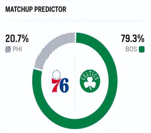賽前,美媒ESPN對(duì)本場(chǎng)比賽進(jìn)行了勝率預(yù)測(cè),凱爾特人勝率高達(dá)79.3% ,76人隊(duì)勝率則僅有20.7% ,差距依舊明顯。