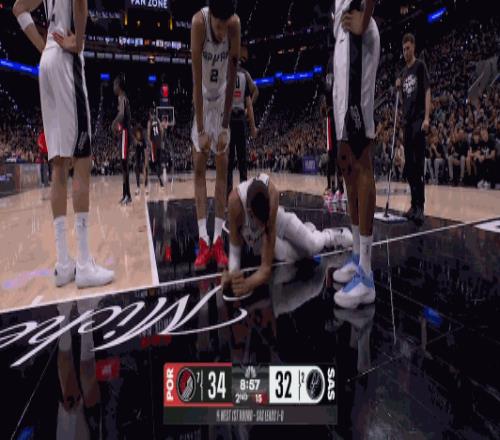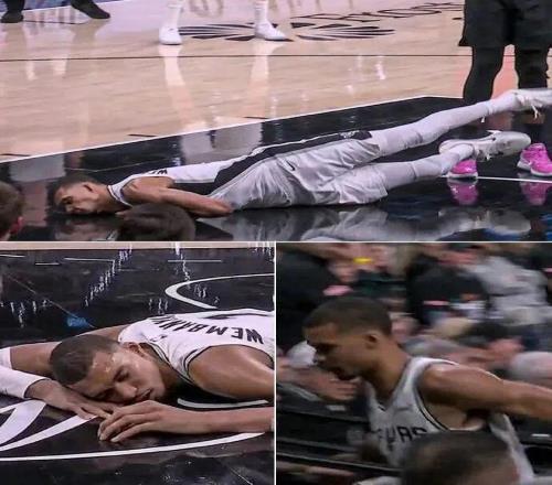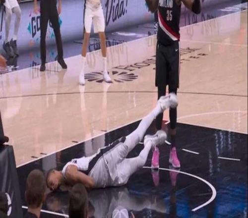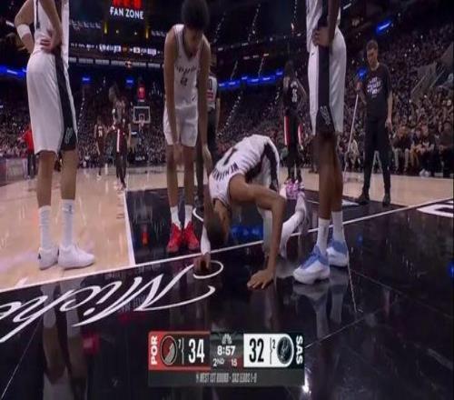 第二節(jié)的時(shí)候,文班亞馬進(jìn)攻中失衡倒地,下巴和側(cè)臉跟地板來了個(gè)親密接觸。文班艱難爬了起來,感覺快要暈過去了,整個(gè)人坐在地上雙手捂臉,半天沒起來,緩了很久自己走回了更衣室。