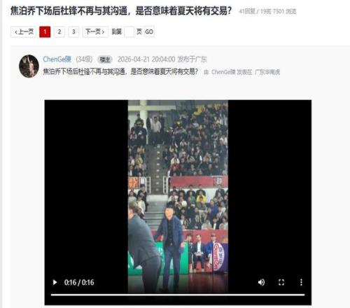之前球隊就出現(xiàn)了矛盾,焦泊喬不滿杜鋒的辱罵,身心受到影響,精神萎靡不振,出現(xiàn)抑郁,一度請假離隊調(diào)養(yǎng)。如今被換下場又沒有得到杜鋒應(yīng)該的尊重,這說明杜鋒與焦泊喬的矛盾并沒有真正和解。對此球迷也是紛紛議論,有球迷說,“下課吧,這杜峰簡直了,人能沒皮沒臉到這程度,也是少見”、“感覺就是這賽季已經(jīng)打算放棄了,然后也是對杜鋒最后的考驗,如果季后賽戰(zhàn)績不佳。不是有人被交易就是有人要離隊”、“正常球員下場會跟教練擊掌,看來網(wǎng)傳更衣室吵架是真,休賽期這兩人會走一個”。