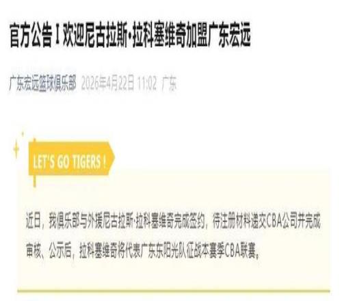 廣東男籃本賽季的陣容短板非常明顯,那就是內(nèi)線的高度不足。無(wú)論是大外援薩林杰還是王少杰,給球隊(duì)的幫助都比較有限。再加上焦伯喬的數(shù)據(jù)嚴(yán)重下滑,以及心理上出現(xiàn)了問(wèn)題,廣東男籃的內(nèi)線問(wèn)題凸顯。在和上海男籃、北京男籃的比賽中,廣東男籃的內(nèi)線都被徹底打爆了。為了解決內(nèi)線的問(wèn)題,廣東男籃已經(jīng)簽下了新大外援拉科塞維奇。目前球隊(duì)已經(jīng)對(duì)此事進(jìn)行了官宣,表示球隊(duì)已經(jīng)和拉科塞維奇完成了簽約,等球隊(duì)為拉科塞維奇完成相關(guān)手續(xù)后,拉科塞維奇就能代表球隊(duì)出戰(zhàn)。