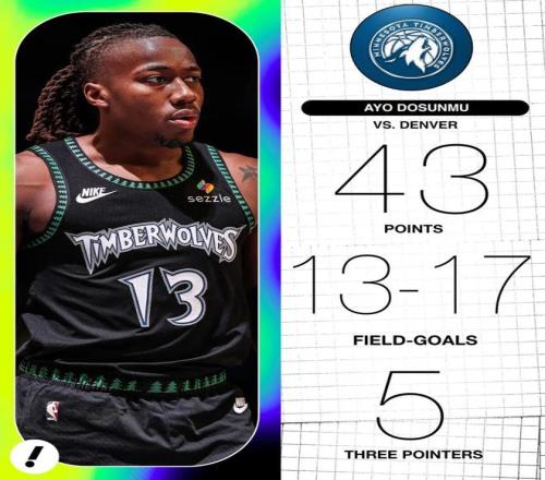 有趣的是,25分當(dāng)時(shí)刷新了森林狼隊(duì)史季后賽替補(bǔ)最高分,僅僅兩天后,他就用又一場(chǎng)43分大幅提高這一紀(jì)錄。